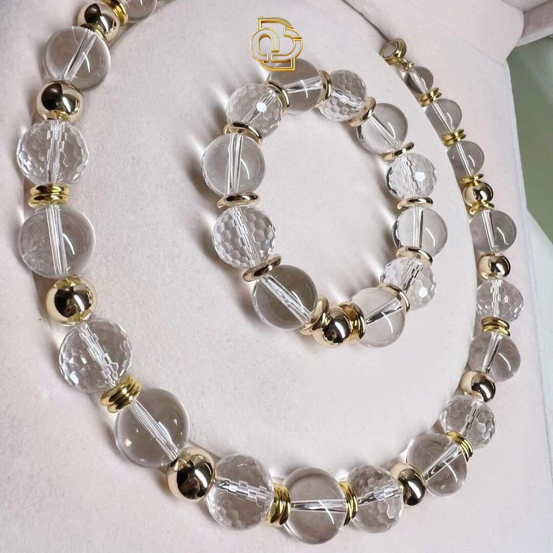 Product Name: All-Clear Natural Clear Quartz Faceted Jewelry Set (Necklace + Bracelet)